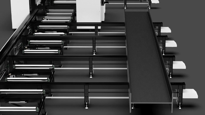 獨(dú)特的結(jié)構(gòu)設(shè)計(jì),支持原料的整根切割12米上 / 下料 上料長(zhǎng)度≤12500mm,實(shí)現(xiàn)零尾料切割,型材利用率高